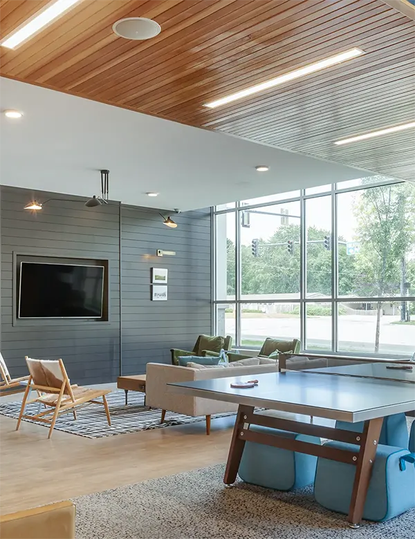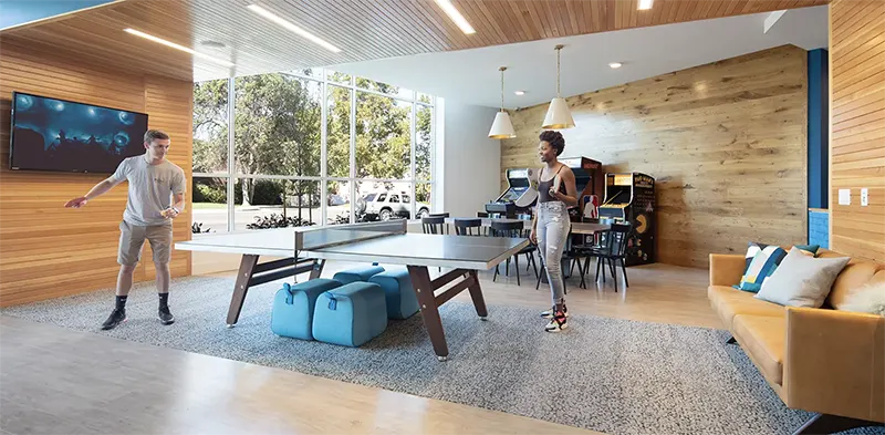 Lounge space with a TV for watching the Broncos, table tennis for a few competitive rounds, and arcade games to beat your high score. Our game room has it all.